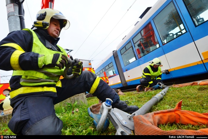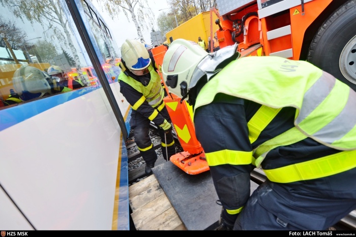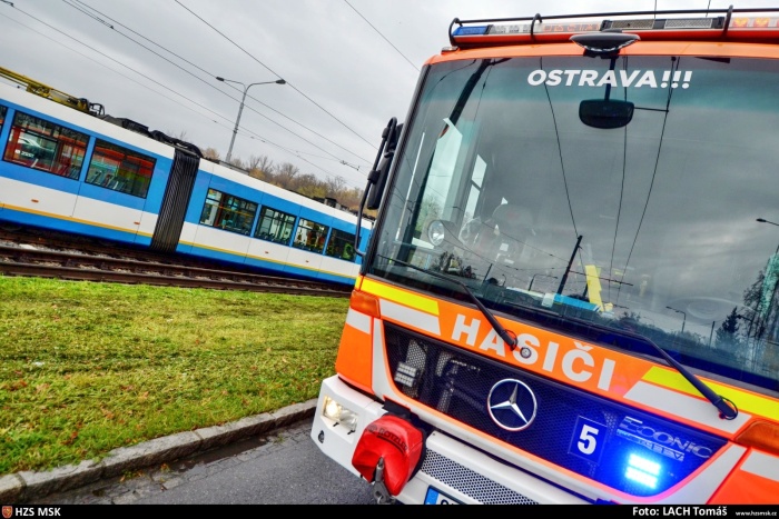 Je i video... Dvě ostravské jednotky profesionálních hasičů (HZS MSK) pomáhaly ve čtvrtek 10.11.2022 po poledni Dopravnímu podniku...