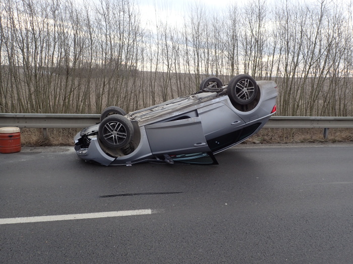 Dvě ostravské jednotky profesionálních hasičů (HZS MSK) zasahovaly v úterý 12.1.2021 dopoledne na silnici mezi Klimkovicemi a Josefovicemi u nehody osobního automobilu Seat Leon, který skončil na střeše na vozovce. Hasiči jeho zraněného řidiče ošetřovali a seat obrátili zpět na kola pomocí vyprošťovacího speciálu MB Actros Bizon.