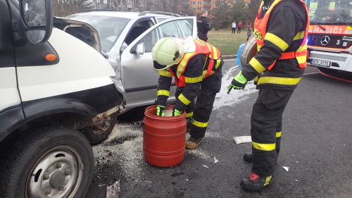 Všichni čtyři cestující byli při příjezdu hasičů mimo havarovaná vozidla, která hasiči zabezpečili před případným požárem. Také se pustili společně s týmem ZZS MSK do ošetřování zraněných. Menší únik provozních kapalin na silnici zasypali nasákavým sorbentem.