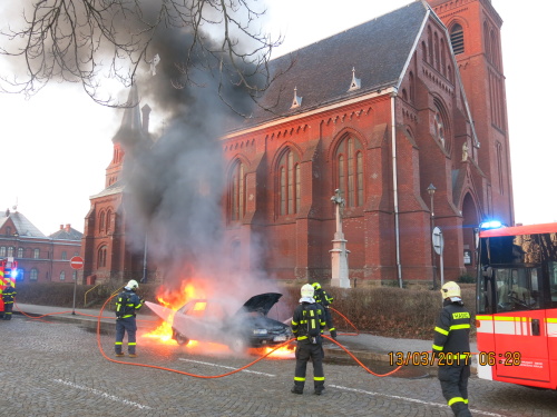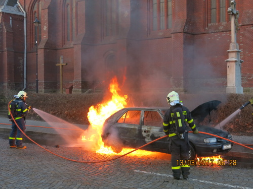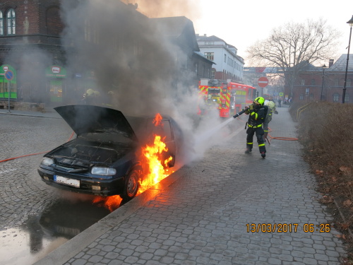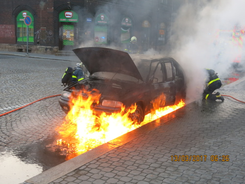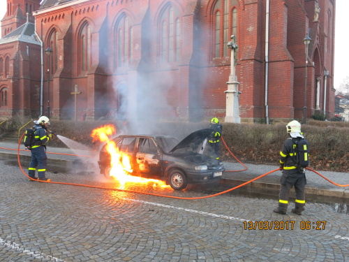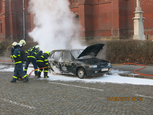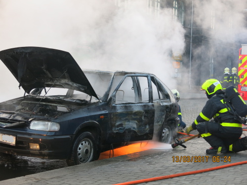 Profesionální hasiči z Ostravy-Zábřehu (HZS MSK) zasahovali v pondělí 13.3.2017 ráno v Ostravě-Vítkovicích u požáru osobního automobilu Škoda Felicia, ve kterém jely čtyři osoby. Hašení jim zkomplikovalo náhlé vzplanutí benzínu na silnici, který unikl z palivové nádrže auta. Požár se obešel bez zranění.