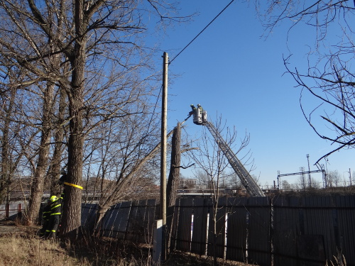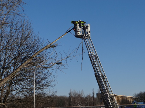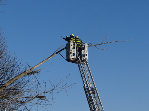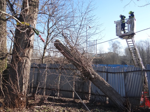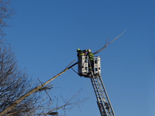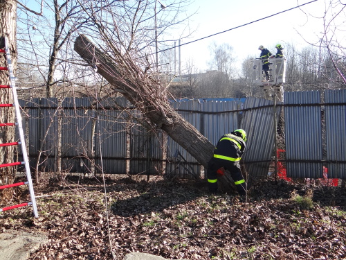 Jednotka profesionálních hasičů (HZS MSK) z Ostravy-Zábřehu se během pondělního rána (27.2.2017) úspěšně zhostila úkolu bez zbytečných škod odstranit nebezpečný vysoký strom, který držel za chatrný plot bývalé ubytovny a telefonní dráty nad frekventovanou Plzeňskou ulicí v oblasti Ostravy-Hulvák. Do likvidace stromu se zapojil jak automobilový žebřík, tak přední naviják hasičské cisterny.