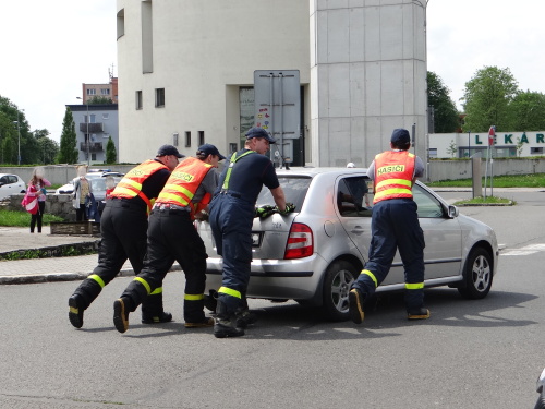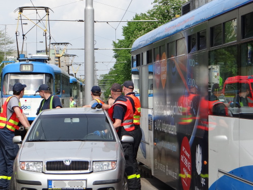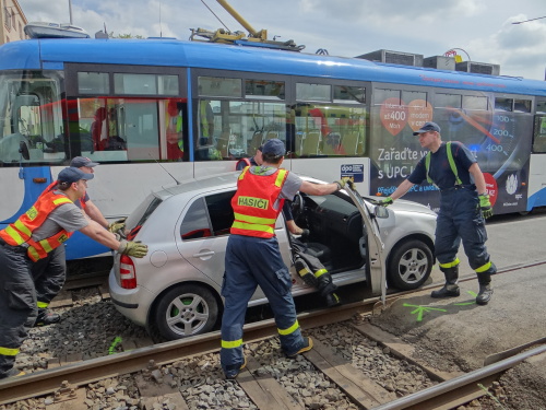 Za velkého zájmu procházejících osob, především školáků, vyprošťovali profesionální hasiči (HZS MSK) v úterý 16.5.2017 odpoledne v Ostravě-Zábřehu u kina Luna havarovaný osobní automobil Škoda Fabia z kolejí, a to po střetu s tramvají. Řidič fabie – senior – vyvázl s lehčím zraněním a šokem.