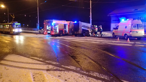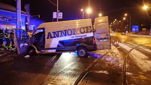 Dvě jednotky profesionálních hasičů (HZS MSK) zasahovaly ve čtvrtek 18.1.2018 brzy ráno v Ostravě-Porubě na křižovatce ulic 17. Listopadu a Vřesinská, kde skončil dodávkový automobil Renault Master ve sloupu, držícím tramvajové trolejové vedení. Hasiči museli mladšího zraněného řidiče opatrně vyprostit pomocí hydraulických nástrojů a položili jej na páteřní desku.