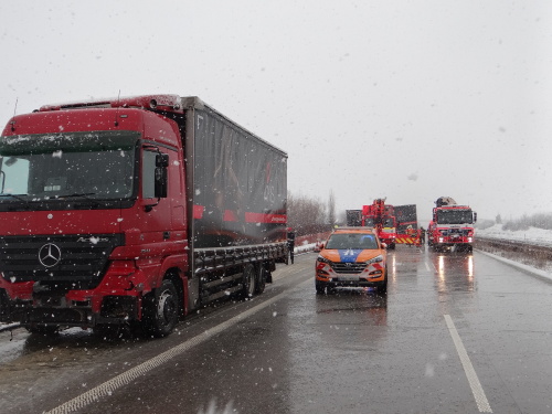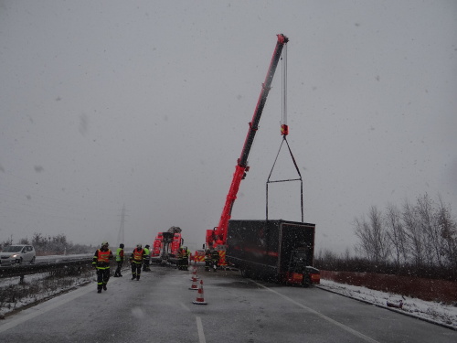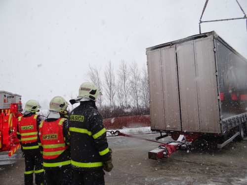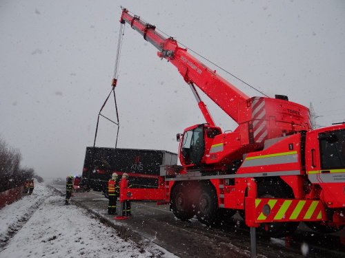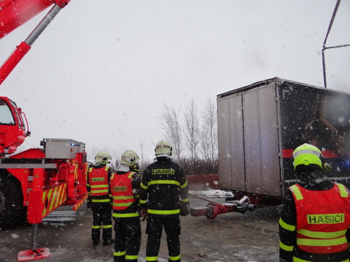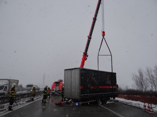 Za čtvrtečního sněžení v Moravskoslezském kraji museli hasiči vyjet dosud ke 14 nehodám, ale jen „několikrát“ k vyproštění kamionů a nákladních automobilů, přitom na dálnici D1 pouze jednou. Tyto nehody (kde zasahovali hasiči) se obešly bez vážnějších zranění