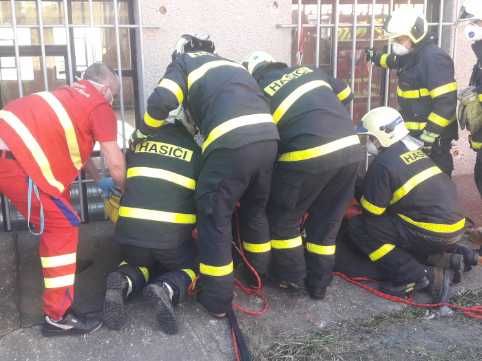 Ostravští hasiči zachraňovali chlapečka po pádu do díry v Klimkovicích