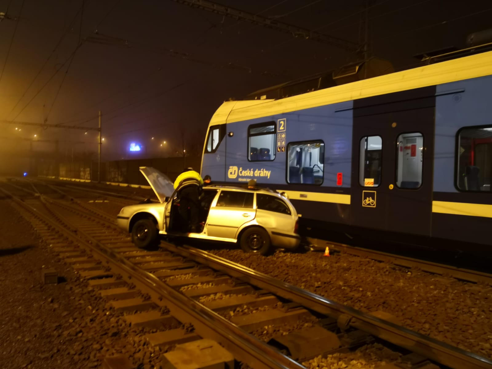 Ostravští hasiči zasahovali u střetu vlaku s osobním autem ve Svinově