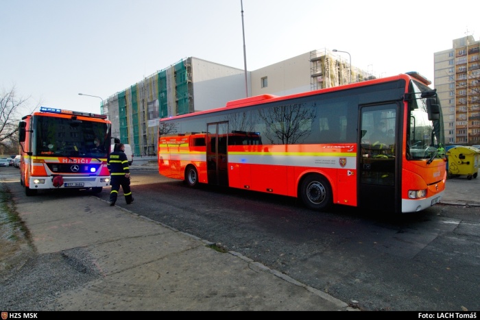 Profesionální hasiči (HZS MSK) ze stanice Ostrava-Zábřeh zasahovali ve středu 2.12.2020 kolem poledne ve stejné ostravské čtvrti u úniku plynu z okraje bytového domu v Tylově ulici. Ze dvou vchodů museli evakuovat celkem 30 osob, zázemí při čekání jim poskytl velký hasičský evakuační autobus Irisbus.