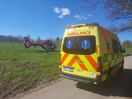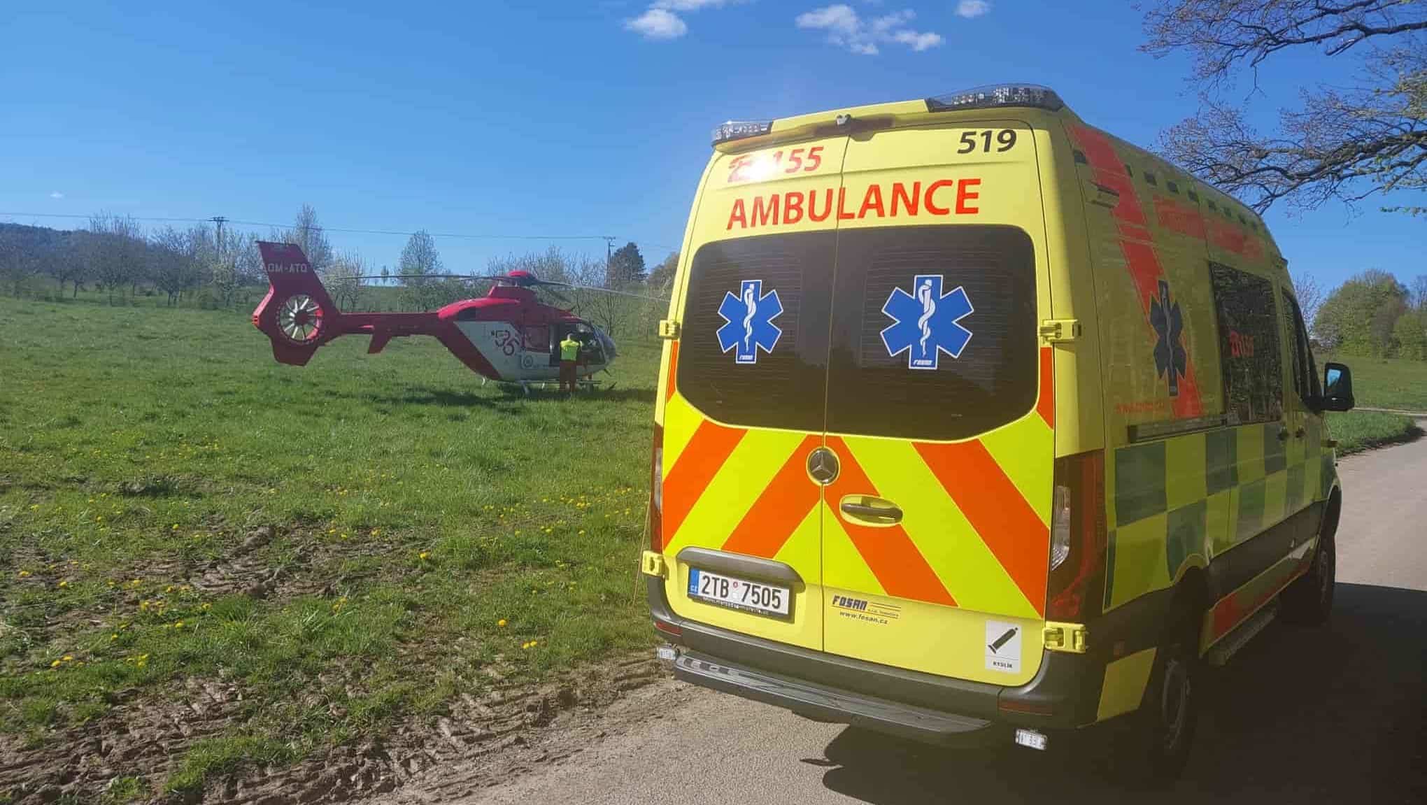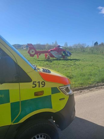 Závažná dopravní nehoda zaměstnala ve středu 29. dubna odpoledne záchranáře. Několik minut před šestnáctou hodinou přijali operátoři tísňové linky oznámení o pádu motocyklu se dvěma zraněnými. Na místo okamžitě vyrazila pozemní posádka a zároveň byl aktivován i vrtulník letecké záchranné služby.