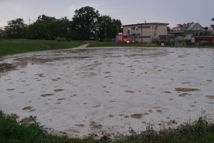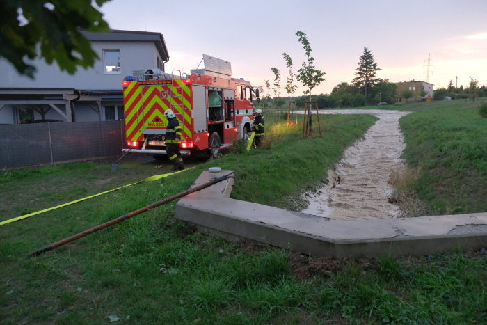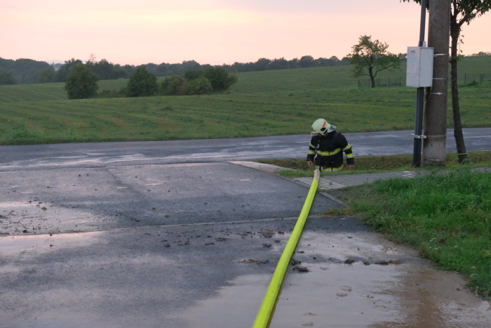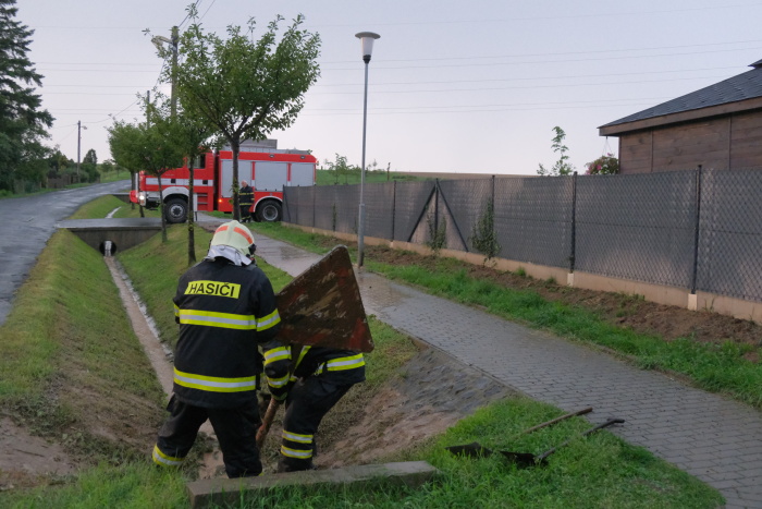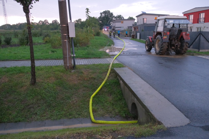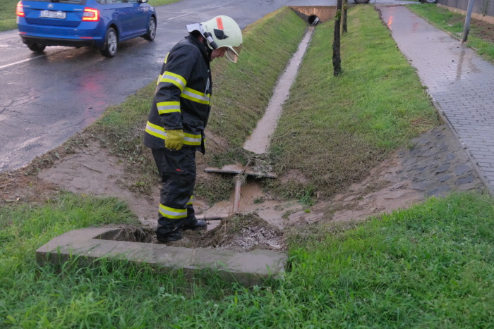 Více než tři hodiny zasahovali na území svého lázeňského města dobrovolní hasiči z Klimkovic. Nejdříve společně s jednotkou HZS MSK Ostrava-Zábřeh odstraňovali spadlou vzrostou lípu v ulici 28. října, pak v Husově ulici vyzvedli mobilní dopravní značku ze silniční kanalizace a tu pročistili lopatami od bahna. Nakonec asi hodinu a půl čerpali vodu z nedaleké retenční nádrže, která zachytila vodu, bahno a slámu z polí pod Hýlovem, aby se nedostaly k rodinným domkům v Husově ulici a níž.