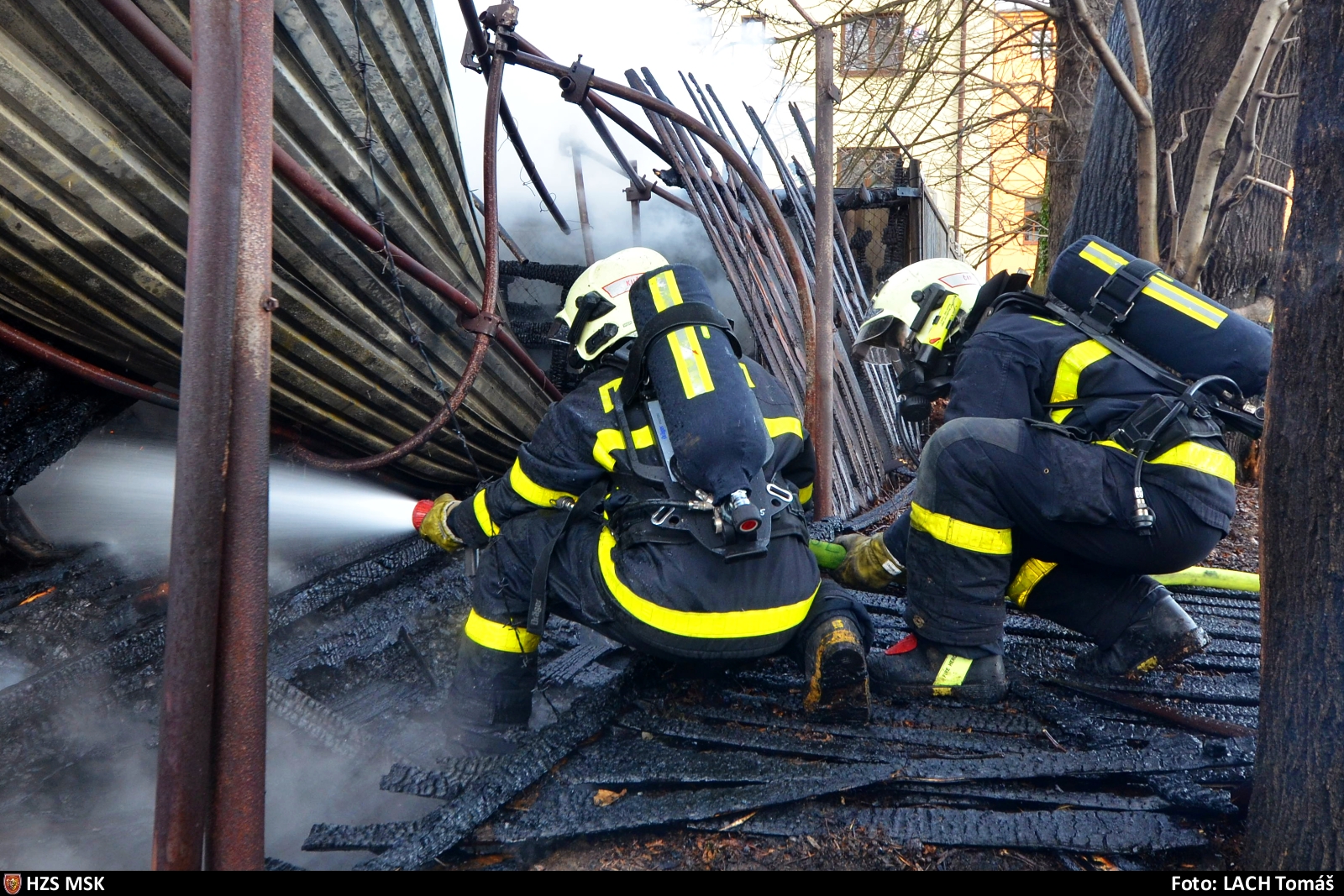 Tři hasičské jednotky zasahovaly v neděli 10. prosince 2017 odpoledne u požáru dřevěného zastřešeného objektu v Ostravě - Vítkovicích.