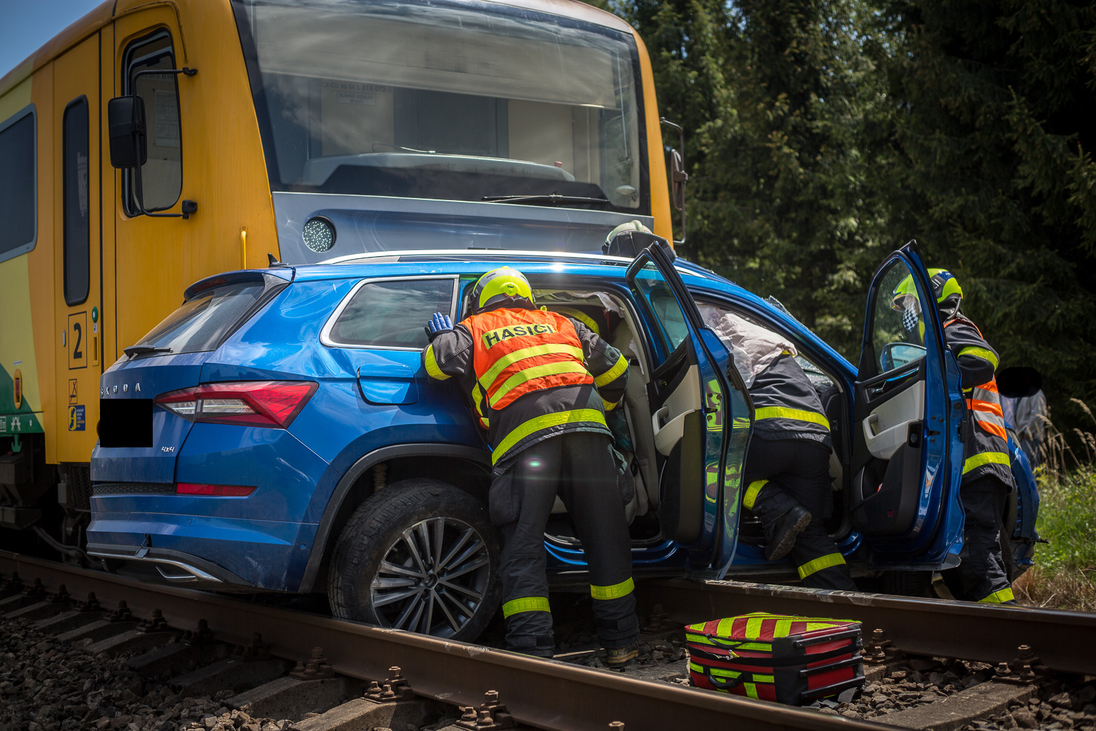 Místo zásahu si po ukončení záchranných prací převzali hasiči Správy železnic, kteří zajistili odtažení vraku škodovky i vrácení vlaku zpět na koleje.
