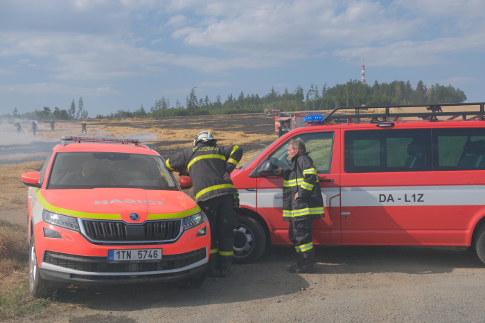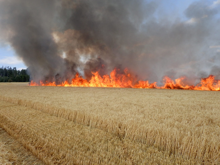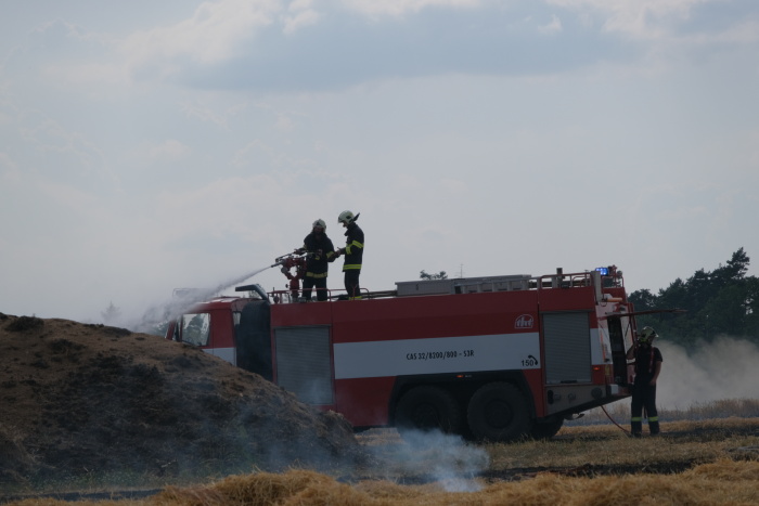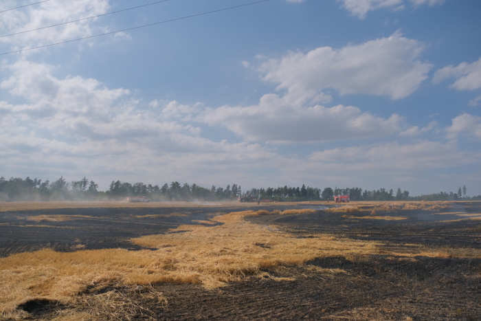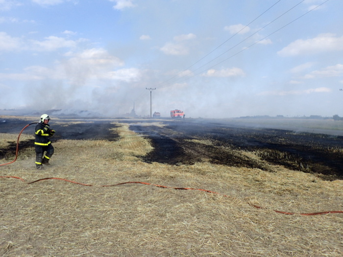 Devět jednotek hasičů zasahovalo odpoledne u požáru 8 hektarů pole s ječmenem, strništěm, kupami slámy a vysokým hnojištěm v obci Hlubočec na Opavsku. Hasiči uchránili před ohněm přilehlý lesík s vysílačem a velké pole s řepkou. Předběžná škoda byla odhadnuta na 40 tisíc korun. Nejpravděpodobnější příčina vzniku požáru – cizí předmět v kombajnu, který způsobil jiskru.