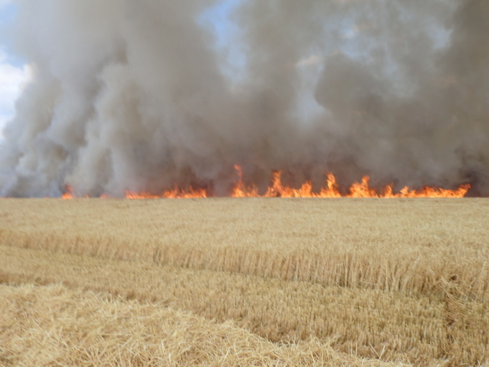 Další pole s obilím na Opavsku se rozhořelo o dvě hodiny později u Stěbořic-Jamnic. Hoří zde asi 4 hektary a 80 balíků slámy. Zasahuje zde zatím 10 jednotek hasičů. Oba požáry se zatím obešly bez zranění, v obou případech byl vyhlášen druhý poplachový stupeň.