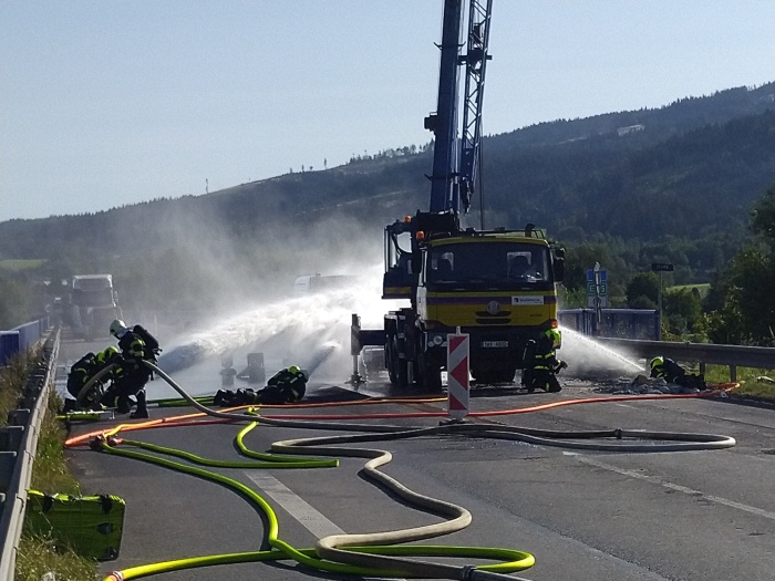 Jako první byli na místě dobrovolní hasiči z Jablunkova, kteří zdálky šlehající plameny na korbě dodávky rychle uhasili a pak chladili tlakovou lahev dvěma vodními proudy C a monitorem. Za chvíli se k nim přidali profesionální hasiči z Třince. Další dobrovolné jednotky sem především dopravovaly vodu na ochlazování.