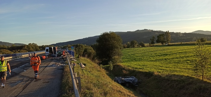 Hlavní silniční tah na Slovensko (I/11) byl uzavřen tři hodiny. Kamiony musely počkat v dlouhé koloně na otevření silnice, osobní automobily byly schopny místo hasičského zásahu objet jinudy.