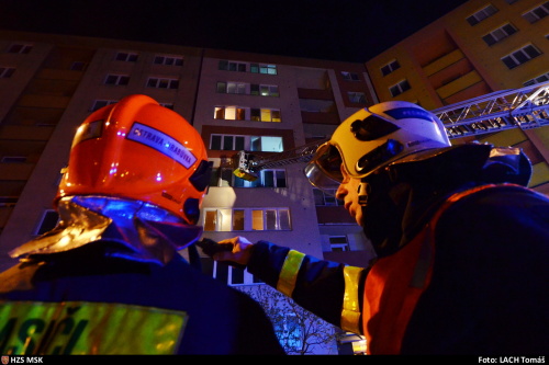 Čtyři jednotky hasičů zasahovaly v pátek 21.4.2017 brzy ráno v Ostravě u požáru bytu 2+1 v prvním patře (2. NP) bytového domu. Z bytů osmipodlažního domu se jim podařilo zachránit 26 obyvatel, které hasiči vyváděli do bezpečí ve vyváděcích maskách, dalších 20 osob evakuovali.