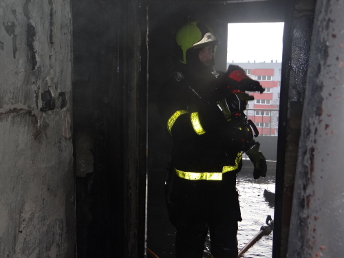 Předběžná škoda na zcela zničeném bytě, včetně vchodových dveří a oken, byla odhadnuta na 50 tisíc korun, příčina vzniku požáru je v šetření.