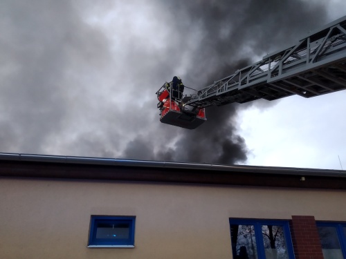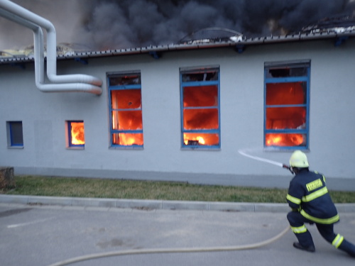 Při příjezdu hasičů již hořelo v celém objektu, stoupal z něj hustý černý dým, viditelný i ze vzdálenosti několika kilometrů. Hasiči dostali oheň pod kontrolu (i s využitím výškové techniky) za hodinu, dohašování jim zabralo další bezmála dvě hodiny. Z ohně mj. vynesli tři svařovací soupravy a dvě dvoukilogramové tlakové láhve, které ochlazovali, stejně jako celý objekt dílny.