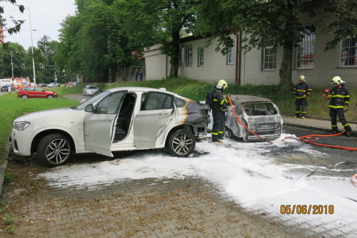 Dvě jednotky profesionálních hasičů (HZS MSK) zasahovaly v úterý 5.6.2018 odpoledne v Ostravě-Vítkovicích u požáru dvou osobních automobilů Škoda Fabia Combi a BMW, který se obešel bez zranění. Celková předběžná škoda byla odhadnuta na 150 tisíc korun, může za ni technická závada na elektroinstalaci fabie.