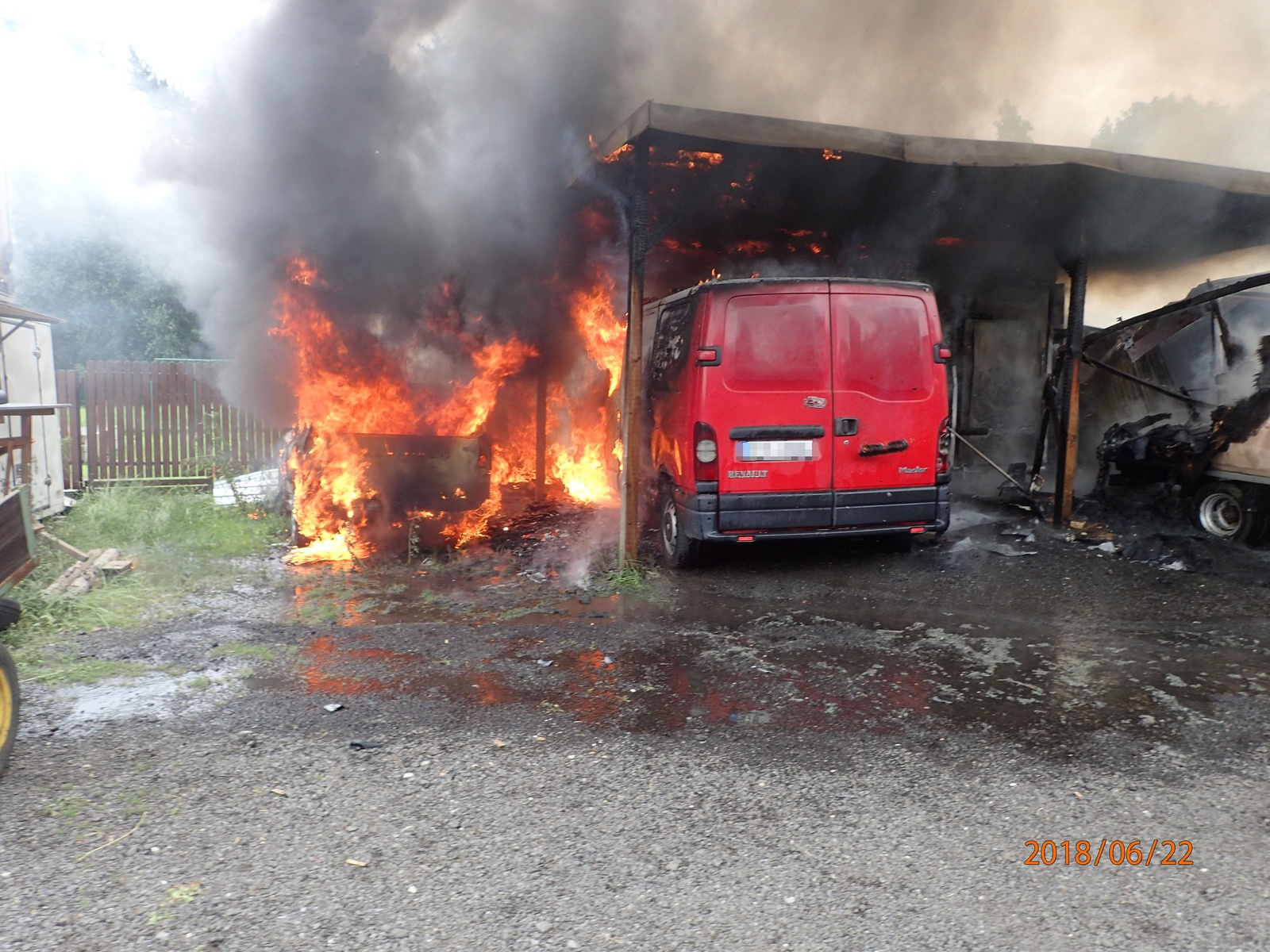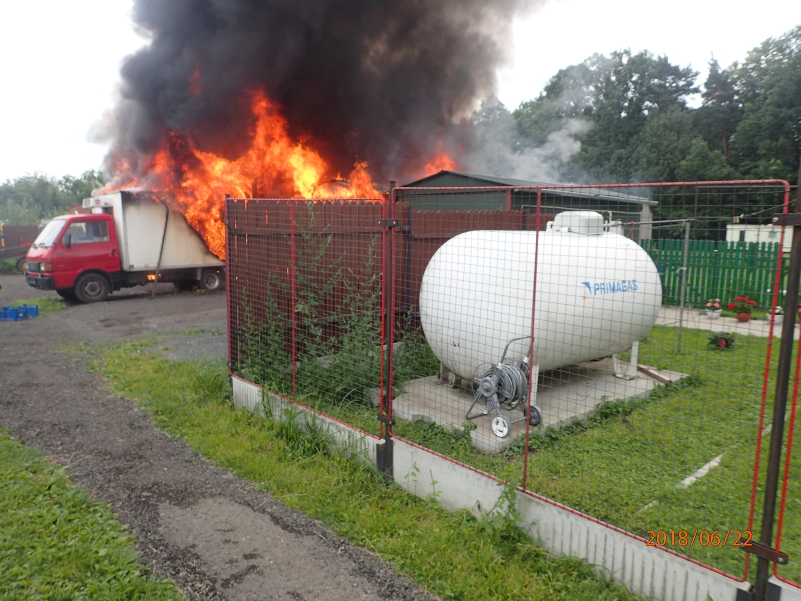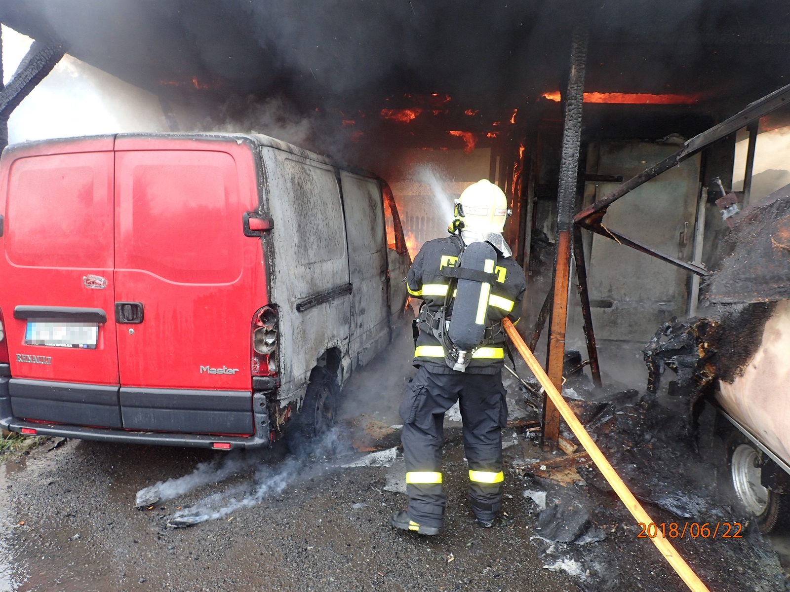 Pět jednotek hasičů zasahovalo v pátek 22.6.2018 na okraji Frýdku-Místku u požáru dvou garáží z vlnitého plechu, velkého chladicího boxu a s tím spojeného dřevěného přístřešku. Hořela zde také tři vozidla – osobní automobil Peugeot 307, dodávky Renault Master a Mazda 2002 s chladicími prostory. Předběžná škoda byla odhadnuta na 800 tisíc korun, příčina vzniku požáru je v šetření.