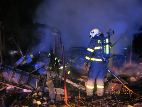 Šest jednotek hasičů zasahovalo ve středu 24.1.2018 pozdě večer v obci Široká Niva, místní části Pocheň (okres Bruntál) u požáru převážně dřevěné garáže s dílnou a sousedním skladištěm, který si vyžádal škodu minimálně za 100 tisíc korun. Hasiči zachránili před požárem přilehlý rodinný domek, uchráněný majetek odhadli na půl milionu korun. Za požár může nedbalost majitelů při používání topidla na tuhá paliva.