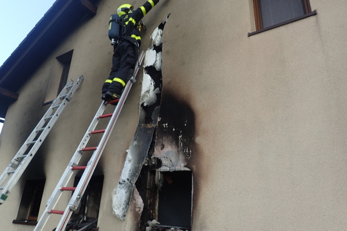 Požár garáže se čtyřkolkou v Třinci, hasiči uchránili rodinný domek