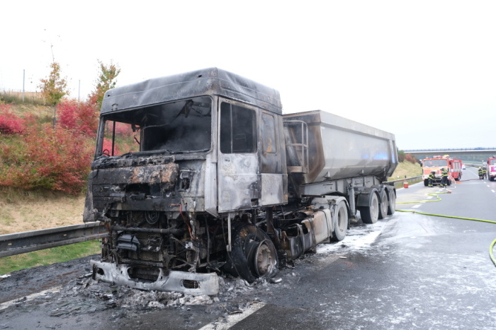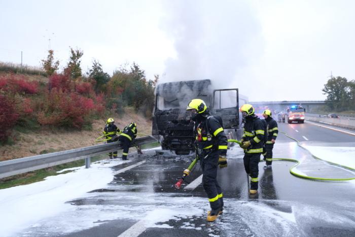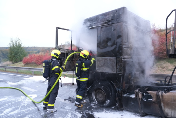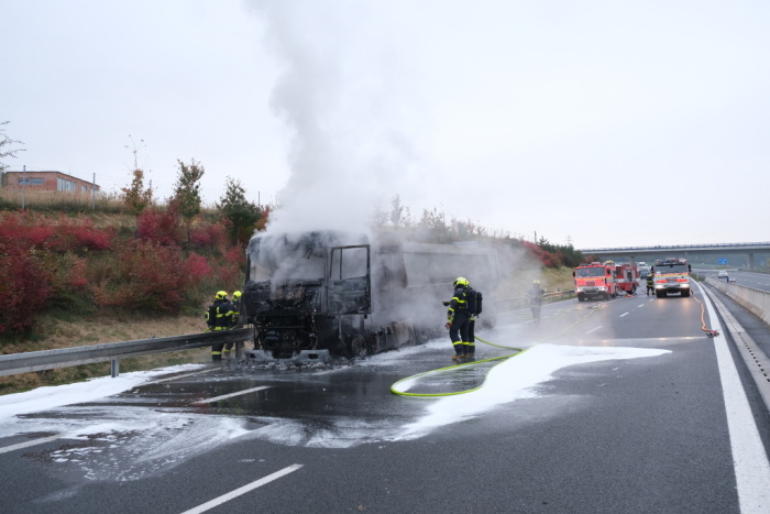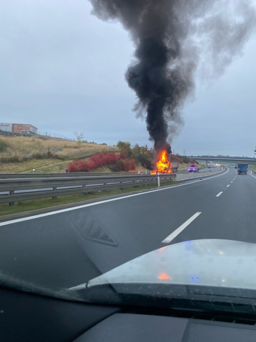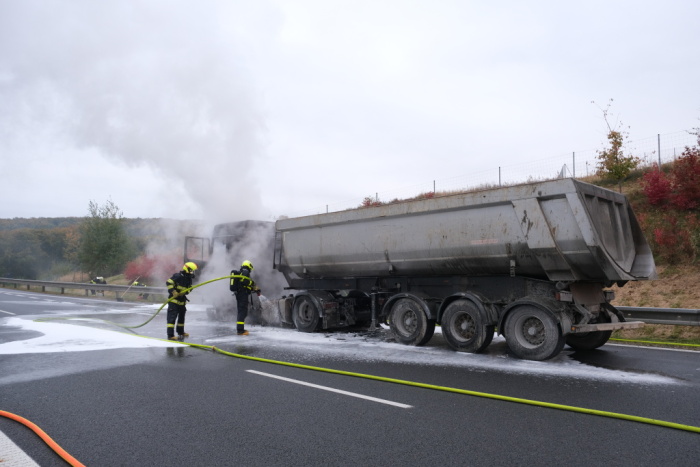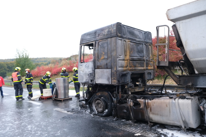 Čtyři jednotky hasičů zasahovaly v pondělí 18.10.2021 ráno a dopoledne na čtyřproudé silnici 11 v Hrabyni (okres Opava) u požáru tahače DAF, který vezl návěs se štěrkem. Hasiči poskytli zraněnému řidiči kamionu předlékařskou pomoc a kyslík. Za předběžně odhadovanou škodu 200 tisíc korun může technická závada na motoru.