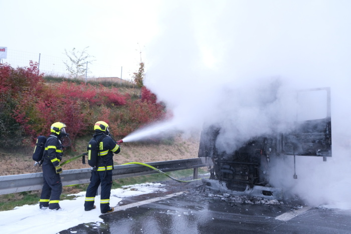 Hasiči dostali oheň pod kontrolu za 35 minut, pak požár dohašovali. Z poškozeného kamionu přečerpali do připravených sudů zhruba 500 litrů nafty, smíchané s hasební vodou, a také motorový olej. Pomocí sorpčních hadů a nasákavého sorbentu zabránili úniku provozních kapalin do nedaleké říčky Hrabyňka. Na závěr zásahu opláchli silnici proudem vody.
