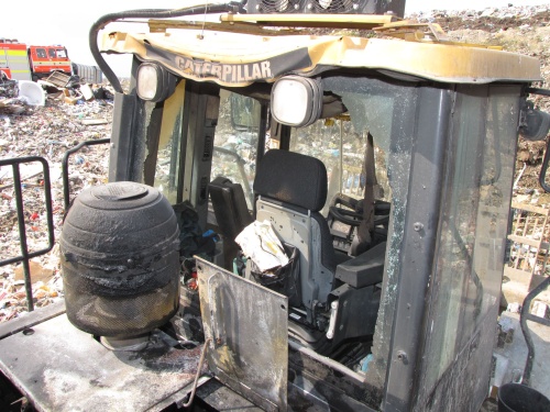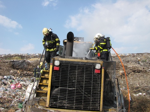 Hořelo v motorovém prostoru kompaktoru. Před příjezdem hasičů se pokusili požár uhasit zaměstnanci skládky pomocí šesti přenosných práškových hasicích přístrojů. Jeden z nich se popálil na třech prstech levé ruky.