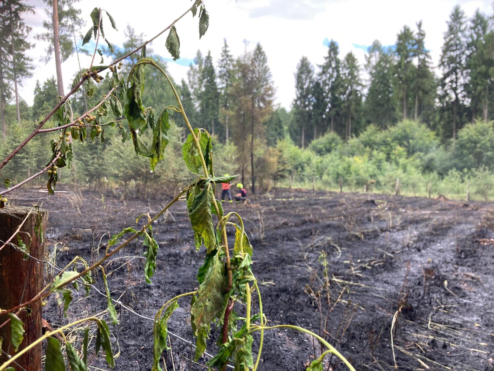 Požár lesních školek v Kozmicích na Opavsku zaměstnal 9 jednotek hasičů, v úterý 4.7.2023 hodinu po poledni.