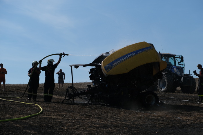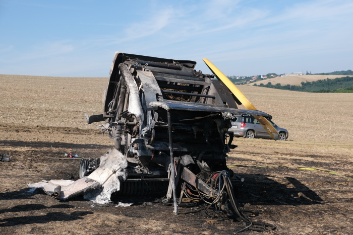 Požár lisovacího stroje a 5 hektarů strniště na okraji Bílovce