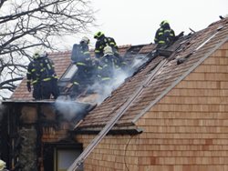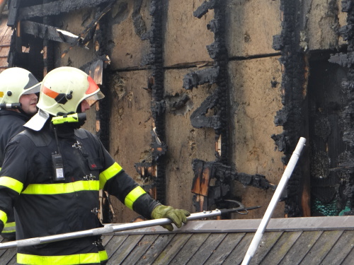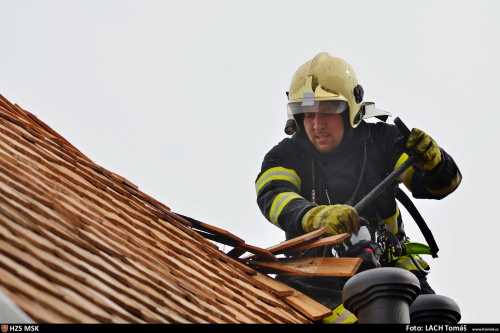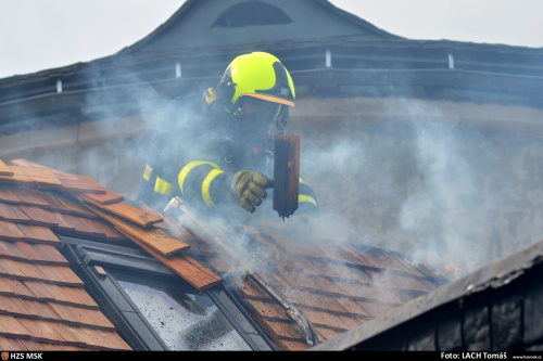 Požár sedlové střechy a mezistřešních prostor se obešel bez zranění. Za oheň může svařování elektrickým obloukem.