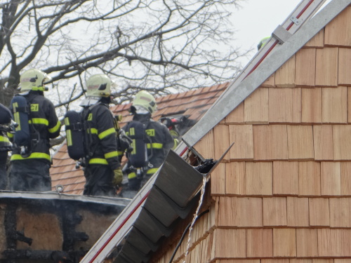 Hořela hlavně střecha a mezistřešní prostory dokončované zděné stavby, kompletně zvenku obložené dřevem, včetně sedlové střechy. Hasiči dostali oheň pod kontrolu zhruba za hodinu, dohašování s rozebíráním dřevěných částí objektu a kontrolou termokamerou jim zabralo dalších několik desítek minut.