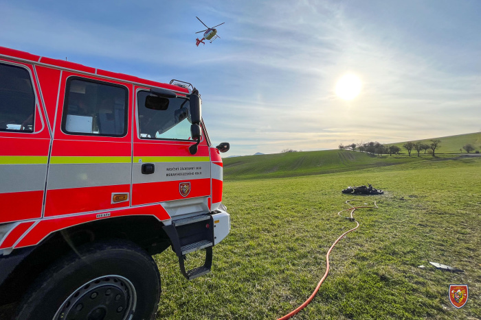 Nehoda s následným požárem se stala po 17. hodině. Hasiči ze stanice HZS Moravskoslezského kraje ve Frýdku-Místku jej za 9 minut uhasili vysokotlakým vodním proudem v dýchací technice, pomohli s ošetřením pacienta a s jeho naložením do vrtulníku LZS.