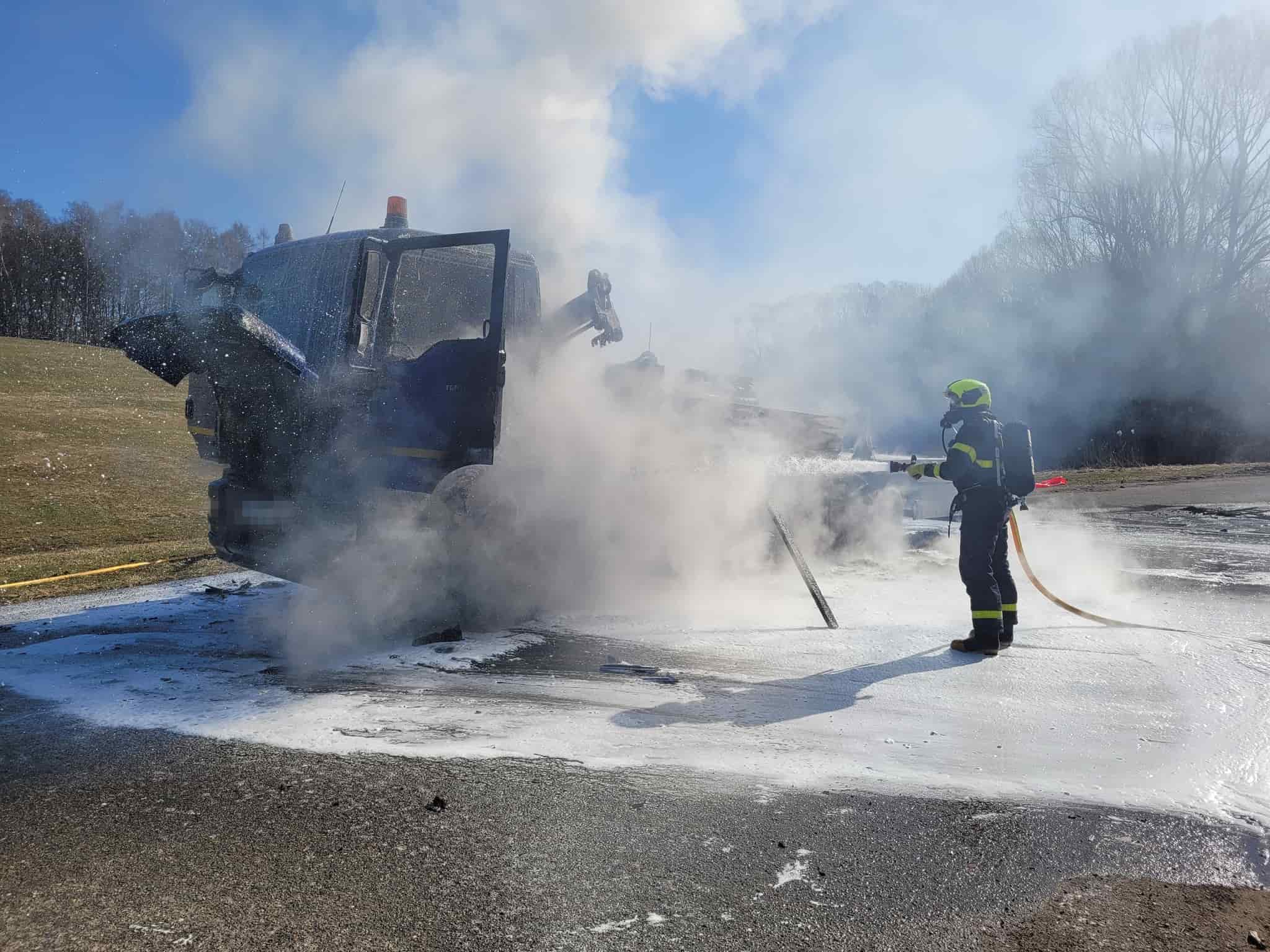 V pondělí dopoledne došlo k nebezpečné situaci, kdy během jízdy začalo hořet nákladní vozidlo převážející stavební materiál. Řidič si vznikajícího požáru všiml včas a okamžitě zastavil mimo komunikaci. Tím zabránil tomu, aby hořící vozidlo ohrozilo ostatní účastníky silničního provozu.
