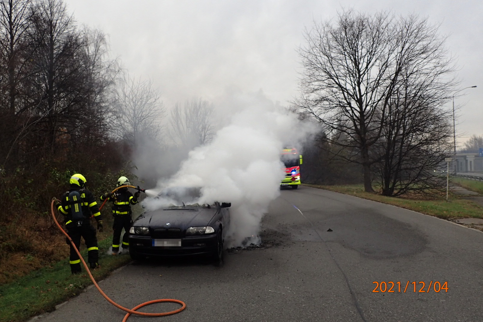5.12.2021 Dvě jednotky hasičů zasahovaly krátce před 12. hodinou u požáru osobního automobilu na nájezdu na ulici Místecká.