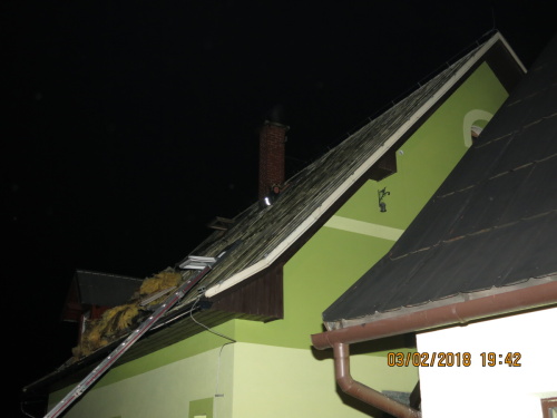Hořela sedlová střecha s obytným podkrovím rodinného domku o půdorysu 12 x 10 metrů. Hasiči dostali oheň pod kontrolu asi za hodinu a půl, dohašování s rozebíráním střešní konstrukce a obložení podkroví po celé délce hřebenu jim zabralo necelou hodinu. Před příjezdem hasičů se podařilo z domku uniknout třem osobám. Prošly kontrolou ZZS MSK.