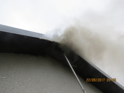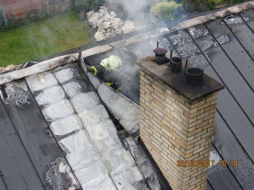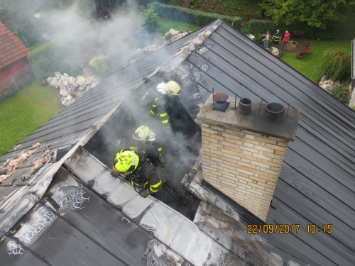 Při jejich příjezdu hořelo od krbu podkroví domu pod sedlovou střechou, přebudované na bytovou jednotku. Hasiči dostali oheň pod kontrolu za tři čtvrtě hodiny, dohašování s rozebíráním konstrukcí jim zabralo několik desítek minut. Poškozeno bylo hlavně sádrokartonové obložení obytného podkroví.