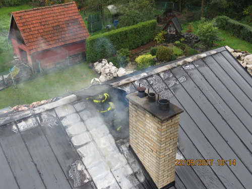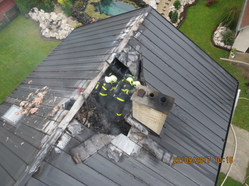 Čtyři jednotky hasičů zasahovaly v pátek 22.9.2017 dopoledne v Kozlovicích (okres Frýdek-Místek) u požáru podkroví rodinného domku, který se obešel bez zranění. Za předběžně odhadovanou škodu 900 tisíc korun může vadná obezdívka krbu.