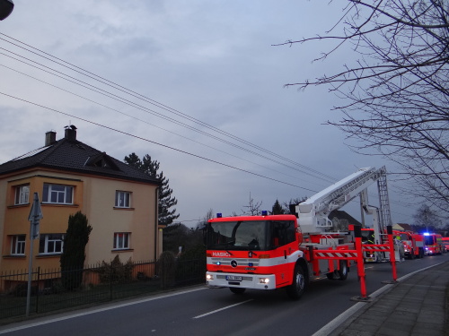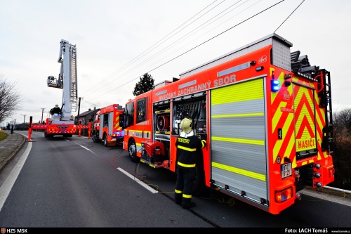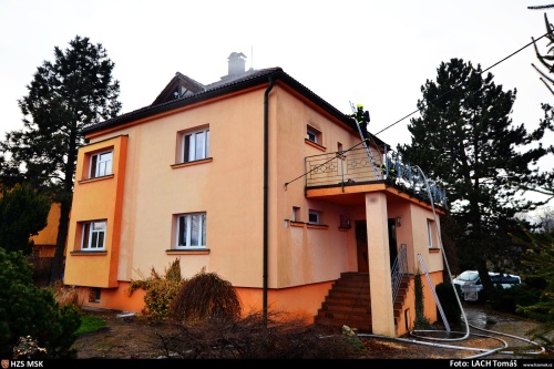 Hořelo v podkroví rodinného domu. Hasiči se pustili do boje s ohněm zprvu pouze zevnitř, aby vzhledem k mrazu nepopraskala při styku s vodou rozpálená střešní krytina (tašky) rodinného domku. Snažili se také použít co nejmenší množství hasební vody, aby nepoškodili zbytek domu. I tak se jim podařil oheň zastavit, aby se nerozšířil do nižších částí objektu.