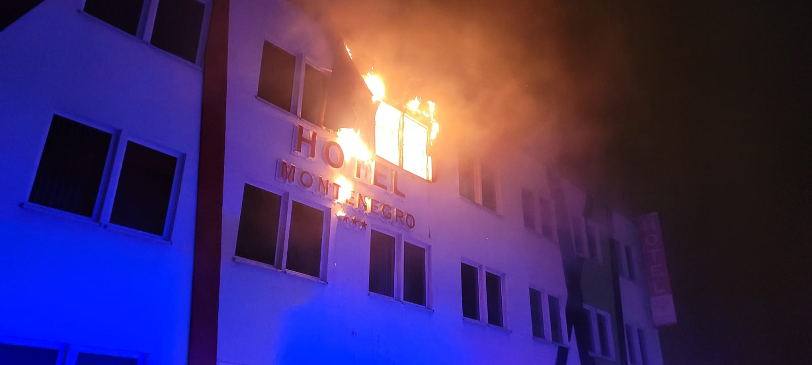 Devět jednotek hasičů zasahovalo v sobotu 27.11.2021 večer v Bruntálu u požáru v pokoji třetího, tedy nejvyššího patra zdejšího hotelu Montenegro. Požár s předběžně odhadovanou škodou 1 milion korun se obešel bez zranění. Příčina jeho vzniku je v šetření.
