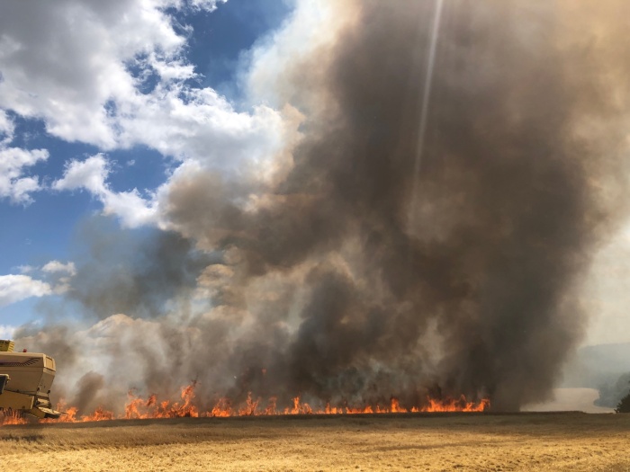 Požár pole se sklízeným ječmenem