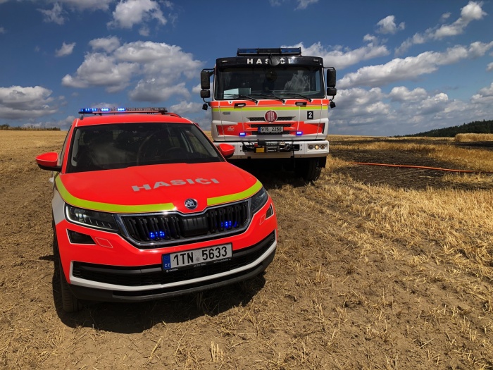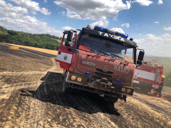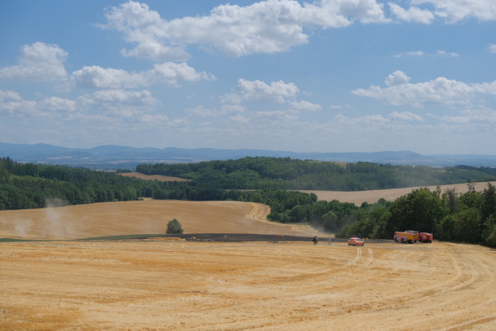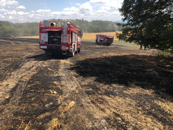 Požár s předběžně odhadovanou škodou 70 tisíc korun se obešel bez zranění, může za něj pravděpodobně jiskra od kamene, který se dostal do kombajnu.