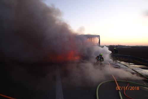 Požár se obešel bez zranění řidiče, který zjistit oheň během jízdy do Polska, vozidlo ihned odstavil na krajnici a