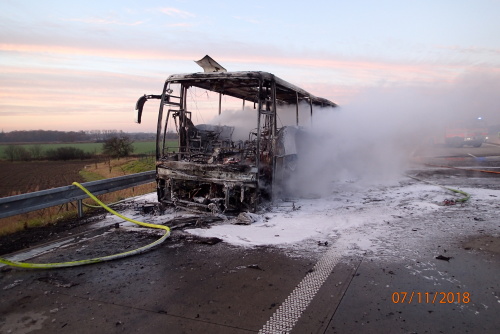 pokusil se uhasit oheň dvěma přenosnými hasicími přístroji (6 kg prášek). Tzv. „dělnický“ autobus vezl brzy ráno do českých firem polské dělníky a vracel se prázdný zpět do vlasti.