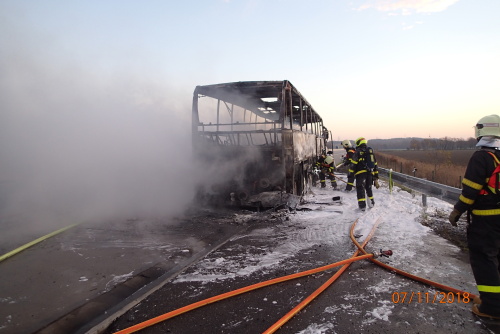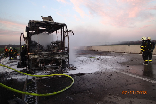 Operační středisko hasičů bylo o požáru informováno ve středu ve čtvrt na sedm ráno. Na dálnici D1 (u