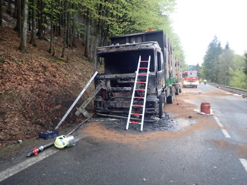 Tři jednotky hasičů zasahovaly v pondělí 6.5.2019 večer v obci Bílá (okres Frýdek-Místek) až do noci u požáru polského kamionu, který převážel kmeny stromů. Předběžná škoda byla odhadnuta na 700 tisíc korun. Po uhašení museli hasiči přečerpat 180 litrů nafty z proražené nádrže a asistovat při překládání kulatiny na náhradní vozidla.