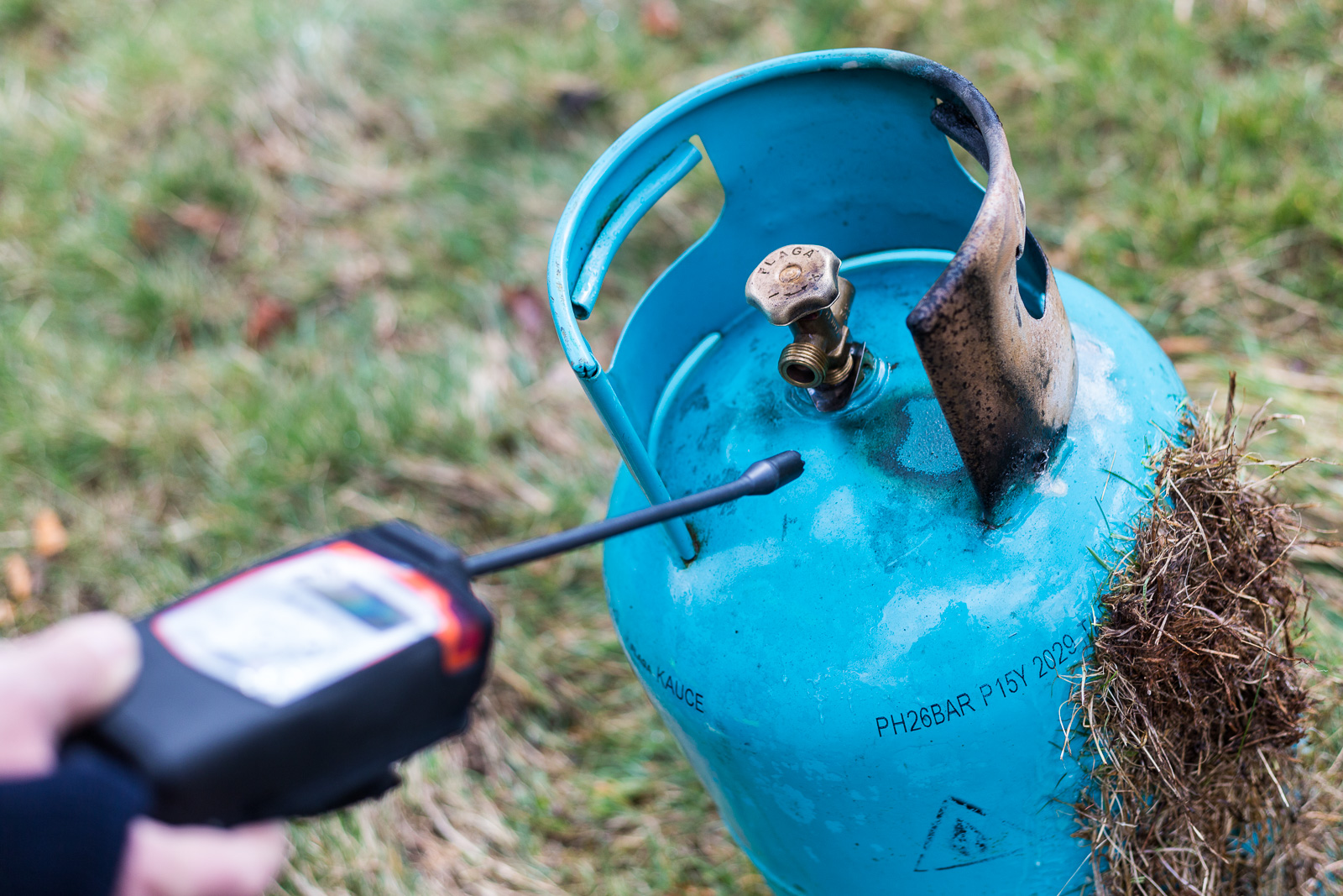 Uvnitř objektu byla provedena pečlivá kontrola termokamerou - požár se však naštěstí nikam nerozšířil. Zároveň hasiči měřili citlivým detektorem koncentraci plynu a stejným přístrojem také ověřili, zda je bezpečná i ochlazená láhev.