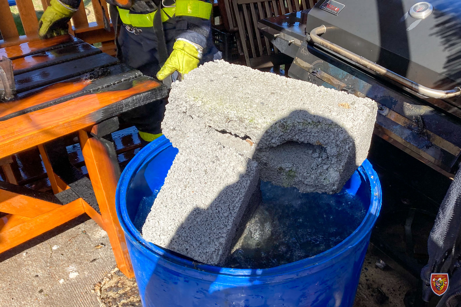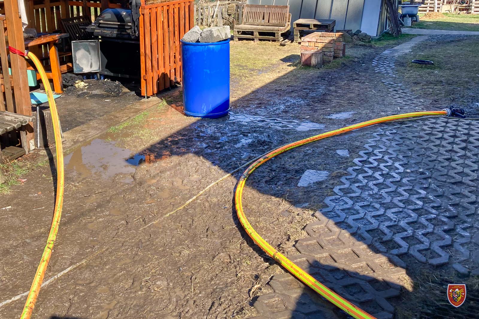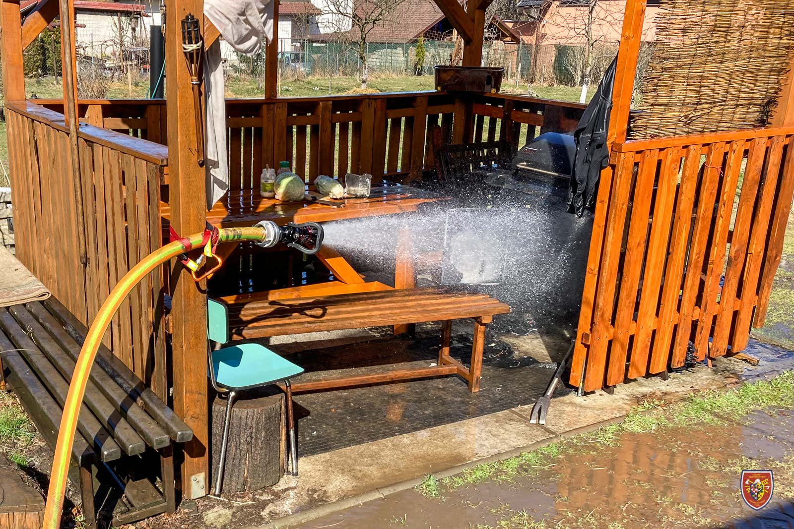 Pro snížení rizika pro zasahující hasiče upevnili hadici pomocí multifunkční smyčky k pergole a ochlazování sledovali z dostatečné vzdálenosti, průběžně prováděli kontrolu termokamerou.