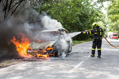 Plameny zasáhly také travní porost vedle silnice, ale požár se tam nerozšířil.